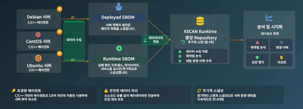 이 두 가지 SBOM 생성을 통해, XSCAN Runtime은 설치 vs 실행이라는 관점에서 서버 자산을 입체적으로 관리합니다.